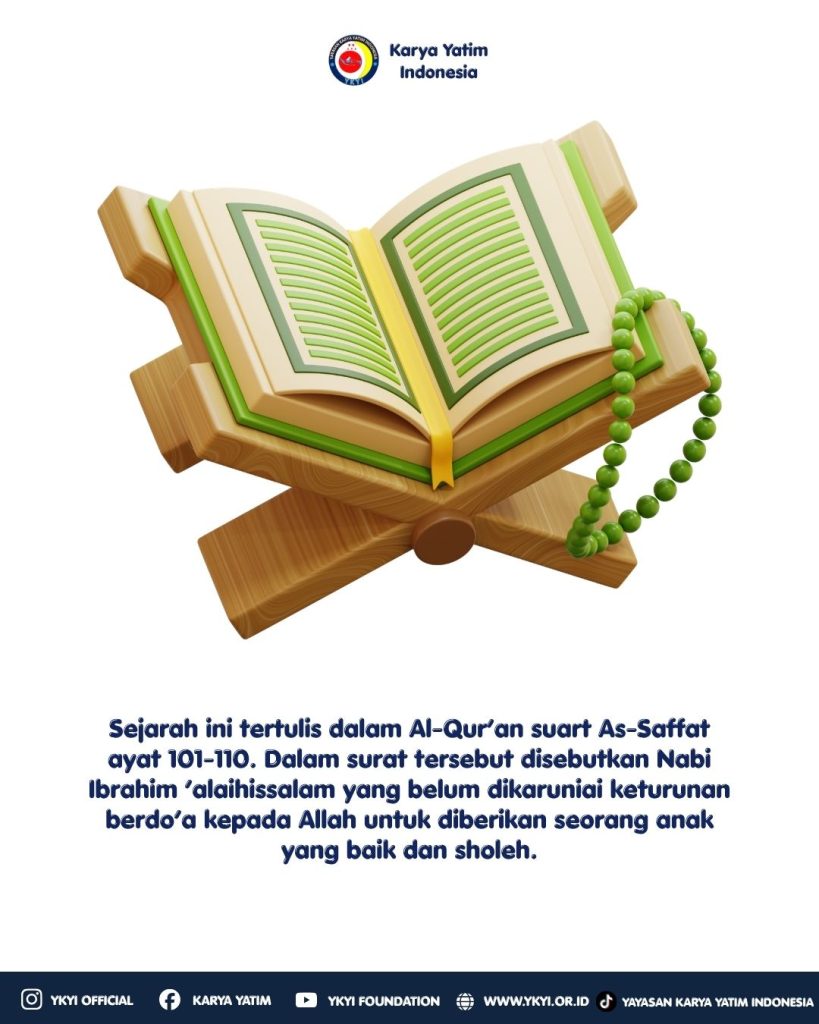 Nabi Ibrahim A.S yang lama tidak memiliki keturunan, memanjatkan doa penuh harap kepada Allah agar dianugerahi seorang anak yang sholeh: