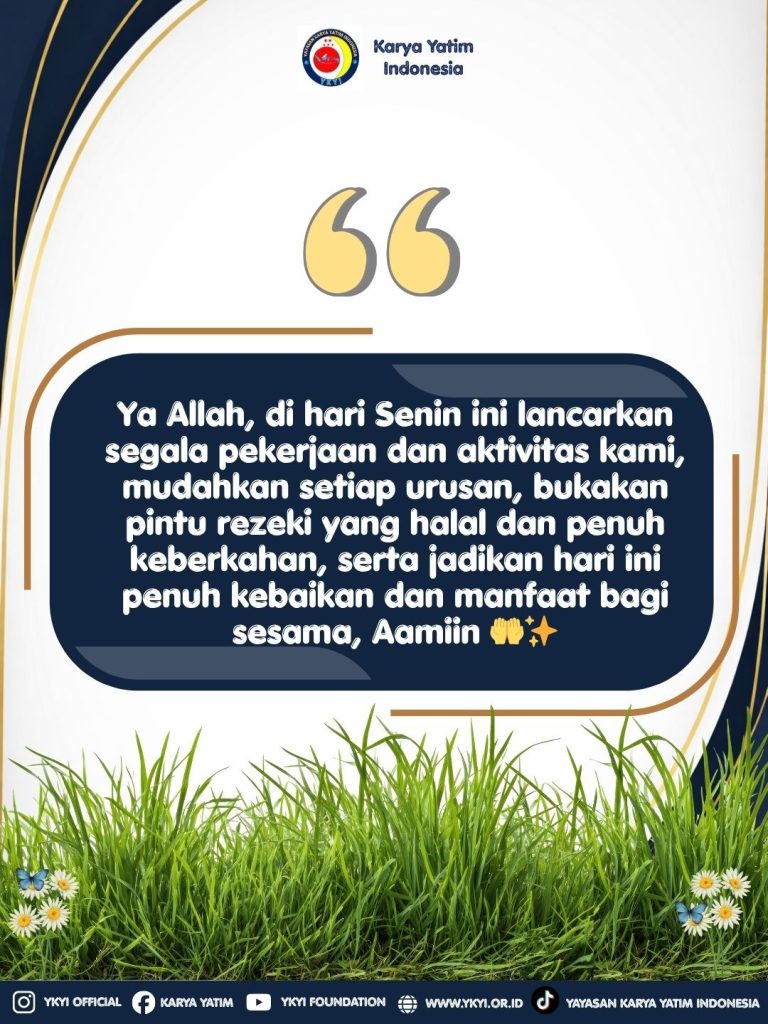 Hari Senin adalah awal langkah baru untuk menata niat, memperbaiki usaha, dan memperbanyak amal kebaikan. Di hari yang penuh harapan ini, mari kita awali dengan doa kepada Allah SWT agar setiap aktivitas kita diberi kelancaran, keberkahan, dan kemudahan dalam segala urusan.