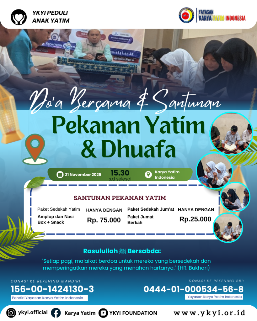 Alhamdulillah, Pekanan Yatim & Dhuafa kembali dilaksanakan sebagai ruang kebaikan yang menghadirkan senyum, doa, dan harapan baru bagi adik-adik yatim dan dhuafa. Setiap dukungan yang Anda titipkan adalah cahaya yang menerangi langkah mereka.