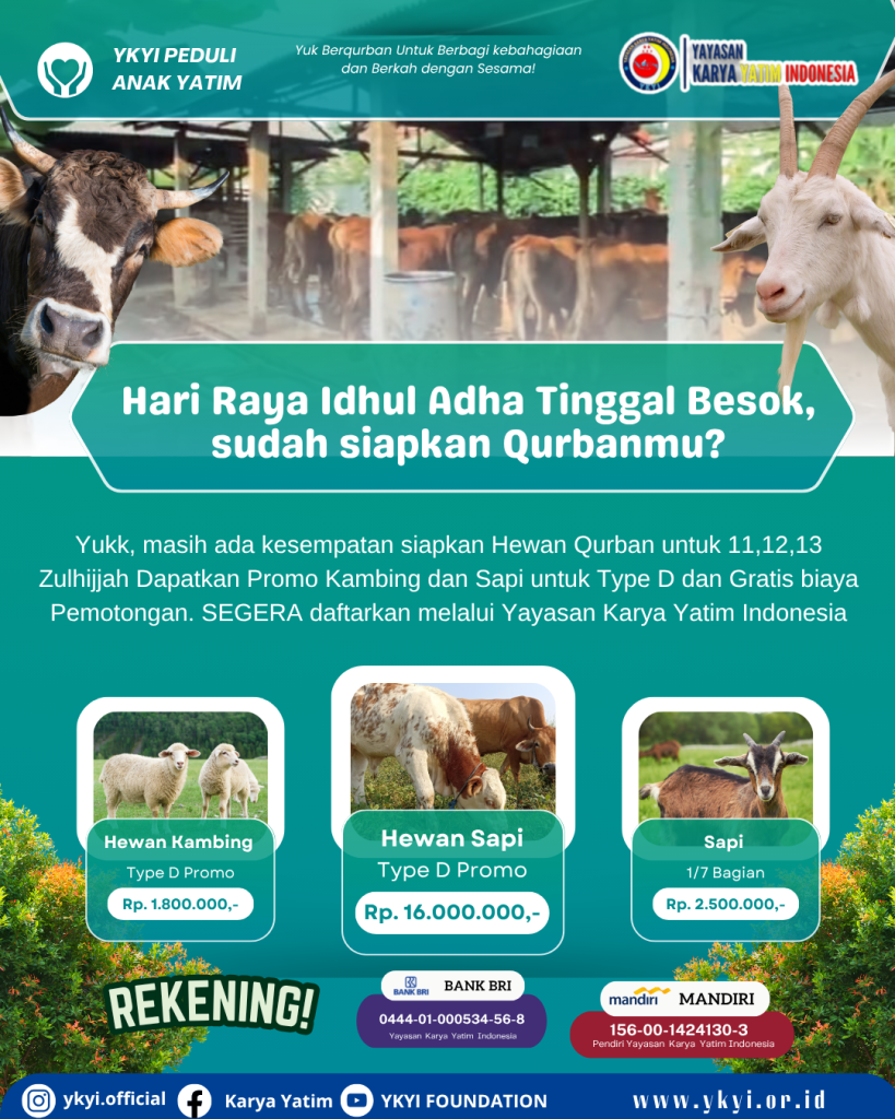 #qurban2025 #IdulAdha1446H #QurbanYKYI #BerbagiUntukSesama #PromoQurban #YayasanKaryaYatimIndonesia #IdulAdha #QurbanAnakYatim #DonasiOnline #QurbanTerpercaya #YKYIPeduliAnakYatim