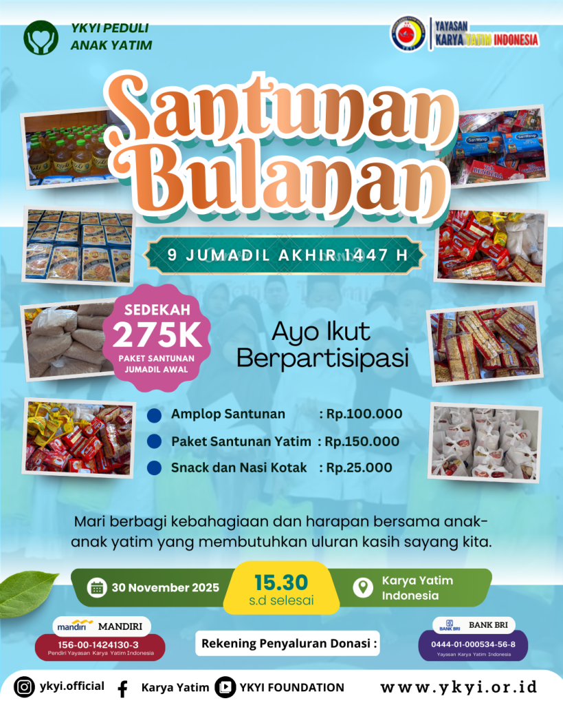 #SantunanYatim #BerbagiKebaikan #YKYI #KaryaYatimIndonesia #SantunanBulanan #YayasanYatim #AksiKemanusiaan #SedekahYatim #BersamaKitaPeduli