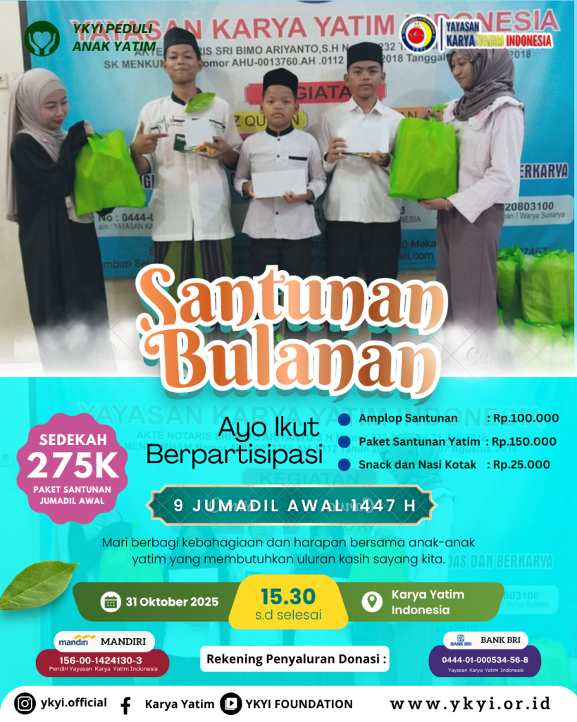 #SantunanYatim #KaryaYatimIndonesia #SedekahYatim #BerbagiKebaikan #YKYIFoundation #ProgramPeduliYatim #AmalJariyah #BersamaKitaBerbagi #YatimDhuafa #GerakanCintaYatim
